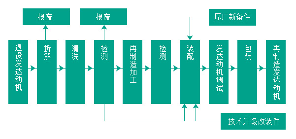 再制造對舊發(fā)動機完全拆解,拆解到單一零部件,并對所有零件進行分檢測量,而普通大修只對舊發(fā)動機的故障部位拆解,對隱含的質量問題無法排除。